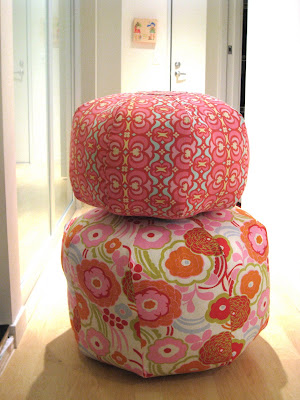 finished sewing the amy butler gumdrop pillows for my lil sisters dorm room.